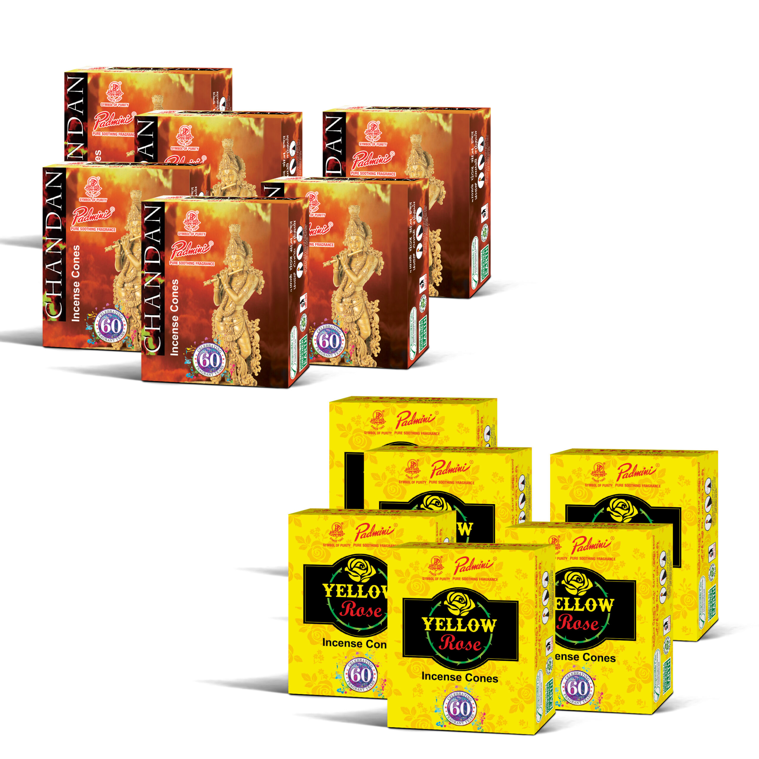 Chandan & Yellow Rose Cone Combo – 12 Packs